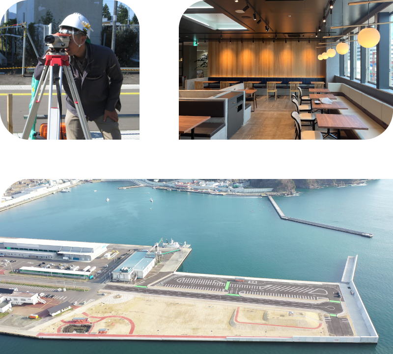 校舎や体育館、保護施設などの公共施設建設をはじめ、インテリジェントオフィスビル、マンション・アパート、店舗建築、企業の寮や保護施設など、多種多様な建築実績を誇ります。