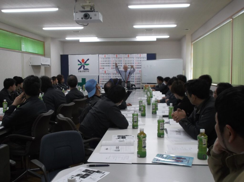 平成31年4月6日(土) 高光建設 会議室にてフルハーネス型墜落制止用器具使用作業特別教育プログラムが行われ、高光建設社員、下請業者計34名が参加いたしました。