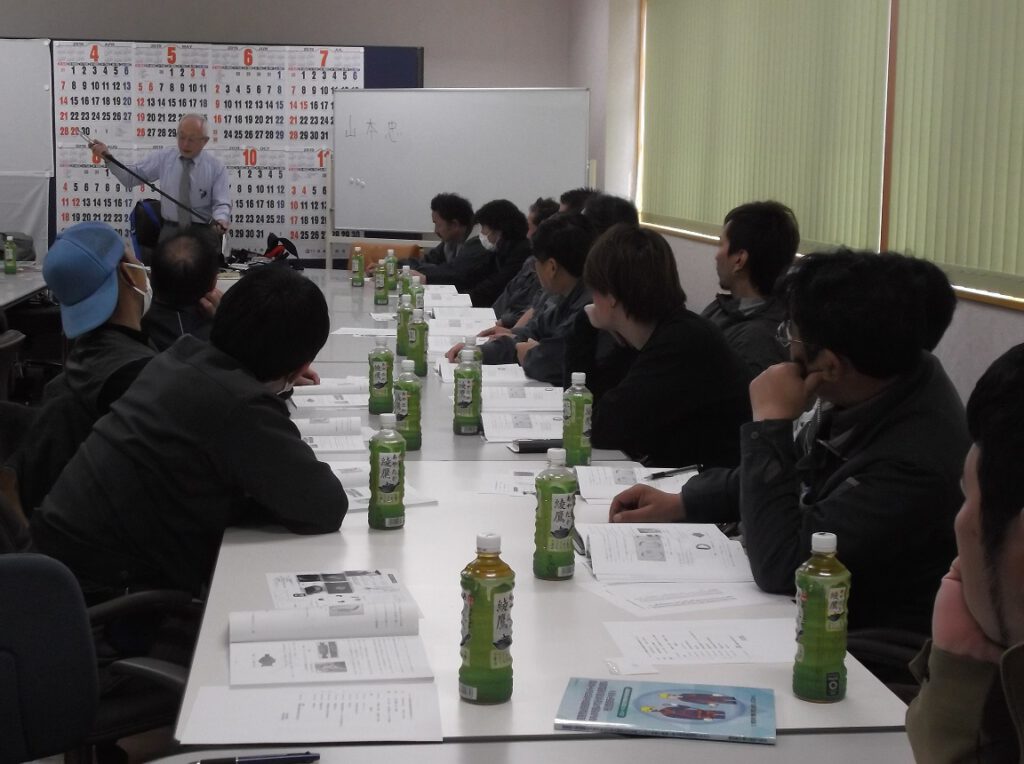 山本忠所長(山本労働安全コンサルタント事務所)を講師に迎え、学科教育4.5時間・実技教育1.5時間の特別教育を受けました。